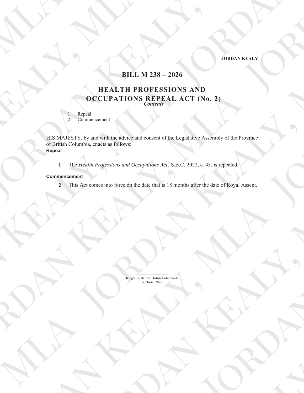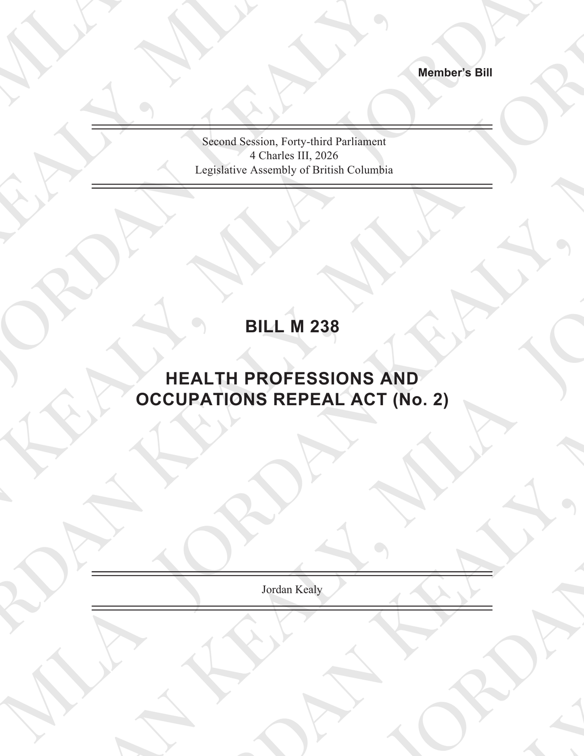 On March 10, 2026, MLA Jordan Kealy introduced the Health Professions and Occupations Repeal Act, aimed at repealing the harmful and overreaching NDP Bill 36.