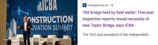 "When steel is cracked, welded, and cracked again, it does not return to its original strength. In fact, it creates more stress points; which is stated in the reports obtained by the ICBA after they waited 9 months for an FOI request of inspection reports from 2020-2025 of the Taylor Bridge," states MLA Kealy.